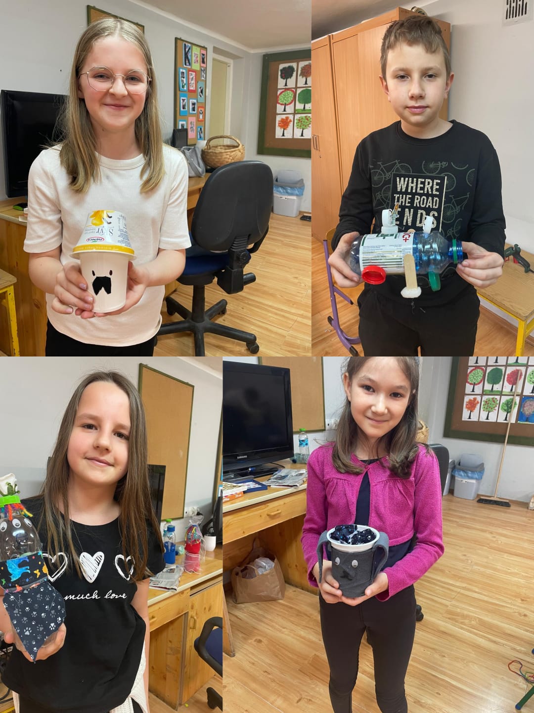 Coś z niczego? Czemu nie?! Czwarta klasa bawi się! W ruch zakrętki i butelki, dziwactw wyszedł wybór wielki :)