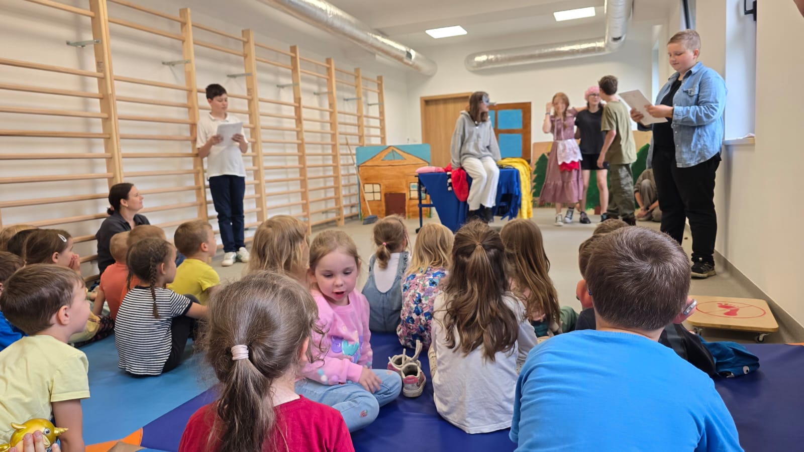 „Nie Mruczek, nie Burek, nie jeż, nie ptak. Czerwony Kapturek to ja, właśnie ja!” - tak z naszymi przedszkolakami przywitała się bohaterka bajki-samograjki Jana Brzechwy. Na przedstawienie zaprosili nas uczniowie kl. 6, którzy przygotowali je w ramach zajęć rozwijających kreatywność. Wszyscy - aktorzy i widzowie - bawiliśmy się wybornie :D. Oby bajkowy morał, by nie ufać obcym, zapadł dzieciom w pamięć.