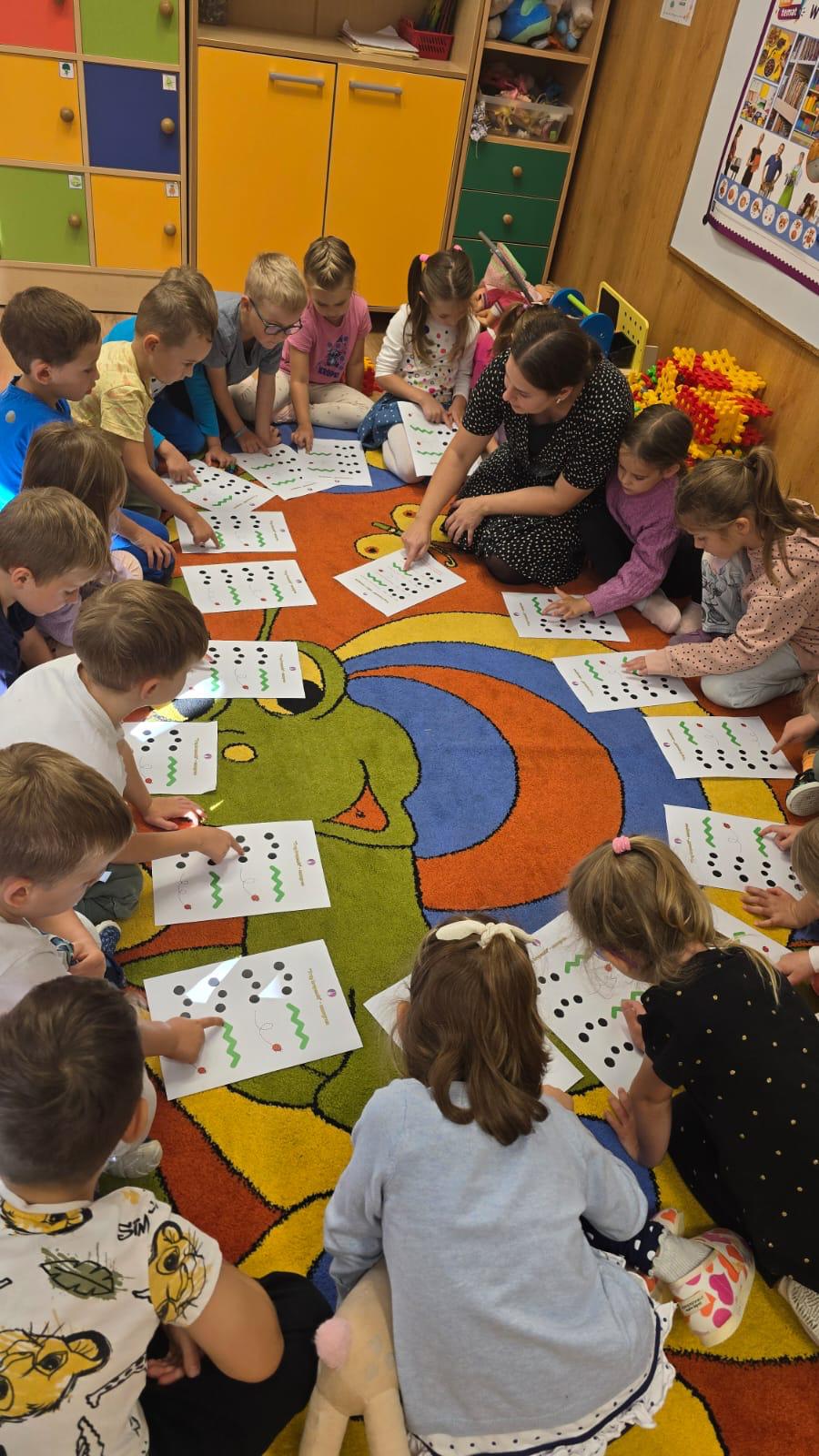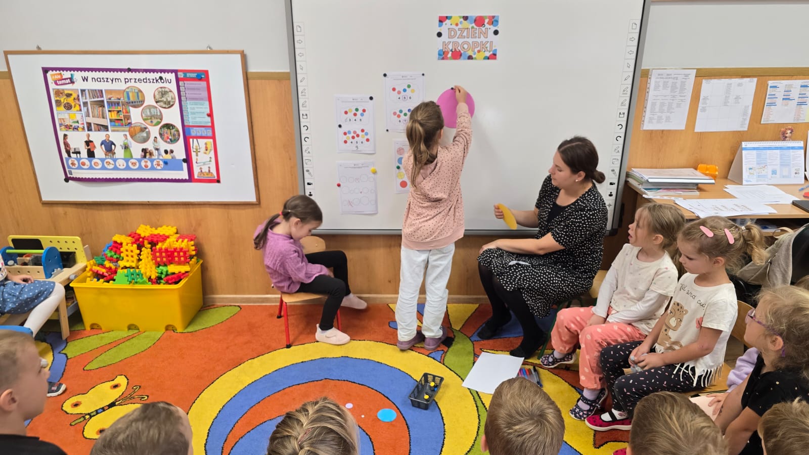 15 września grupa II obchodziła Międzynarodowy Dzień Kropki. Celem tego dnia jest wzbudzenie u dzieci kreatywności, pomysłowości i zachęcenie ich do tworzenia oraz działania. Dzień Kropki jest dniem pełnym odwagi i zabawy, wypełnionym po brzegi kolorowymi kropkami. Na zajęciach poznaliśmy genezę tego święta. Dzieci uważnie wysłuchały opowiadania, jak to zwyczajna kropka zmieniła świat małej dziewczynki o imieniu Vashti. Historia ta uświadomiła przedszkolakom, że każdy z nas ma jakieś ukryte zdolności: TALENT. Tego dnia dostrzegaliśmy kropki tam, gdzie wcześniej nikt na nie nie zwracał uwagi. Okazało się, że kropki towarzyszą nam w naszym codziennym życiu: są w kropkach biedronki, z kropki można utworzyć słońce, bombkę choinkową, kolorową kulę, piłkę czy Wspólnie z dziećmi wykonywaliśmy wiele ćwiczeń matematycznych oraz śpiewaliśmy przy użyciu muzogramu piosenkę „Trzy kropki”. Mamy nadzieję, że pod wpływem historii o dziewczynce Vashti wszystkie dzieci odnalazły swoją mocną stronę !