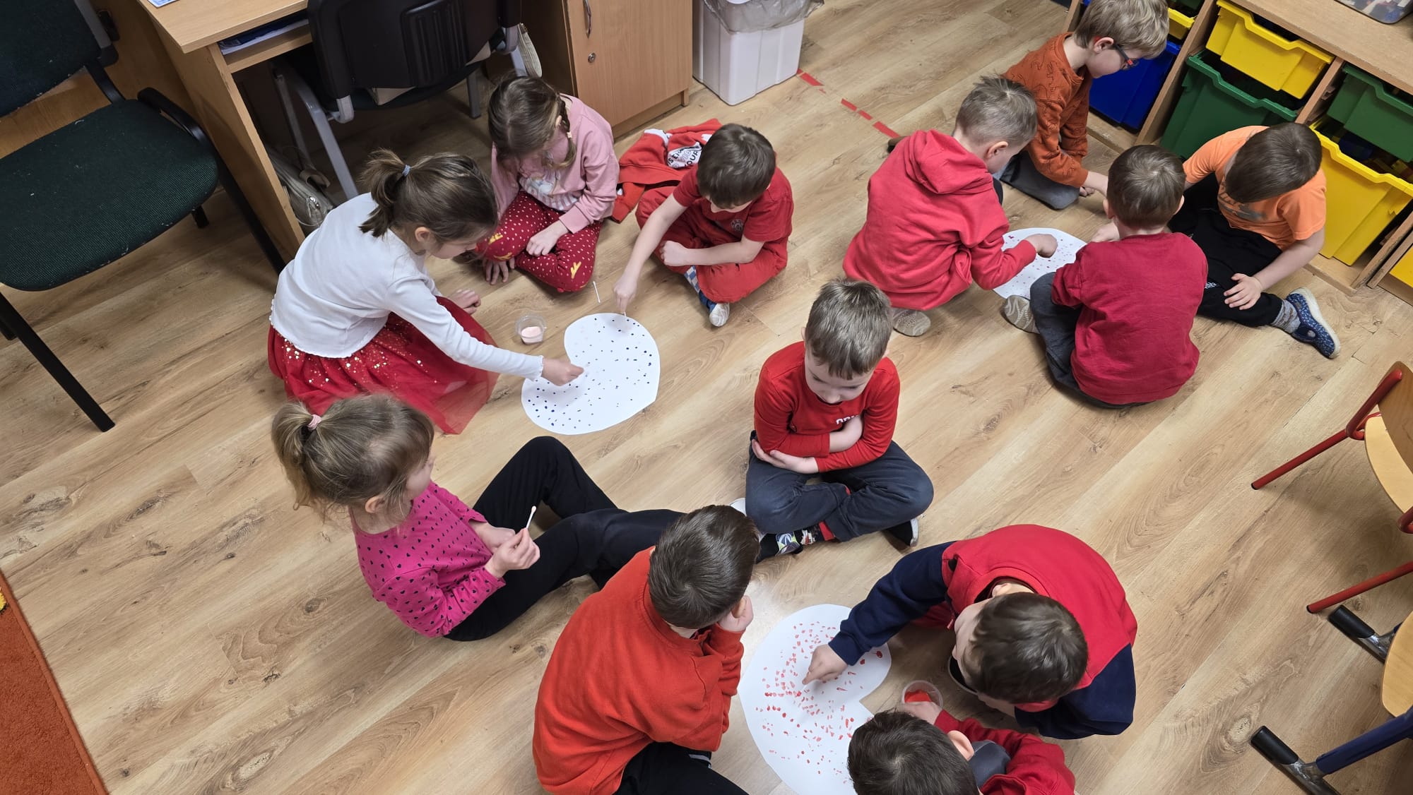 13 lutego w grupie starszaków obchodziliśmy jedno z najprzyjemniejszych świąt nietypowych - serduszkowe święto. W naszej grupie nazwaliśmy je - dniem przyjaźni w ramach którego możemy podziękować swoim bliskim, przyjaciołom za to, że są przy nas, że nas wspierają i pomagają. Tego dnia dzieci do przedszkola przyszły ubrane w różne odcienie koloru czerwonego. Wykonywaliśmy piękne prace plastyczne, serca i laurki dla swoich przyjaciół.
