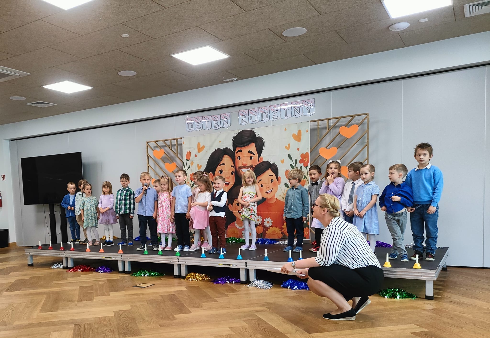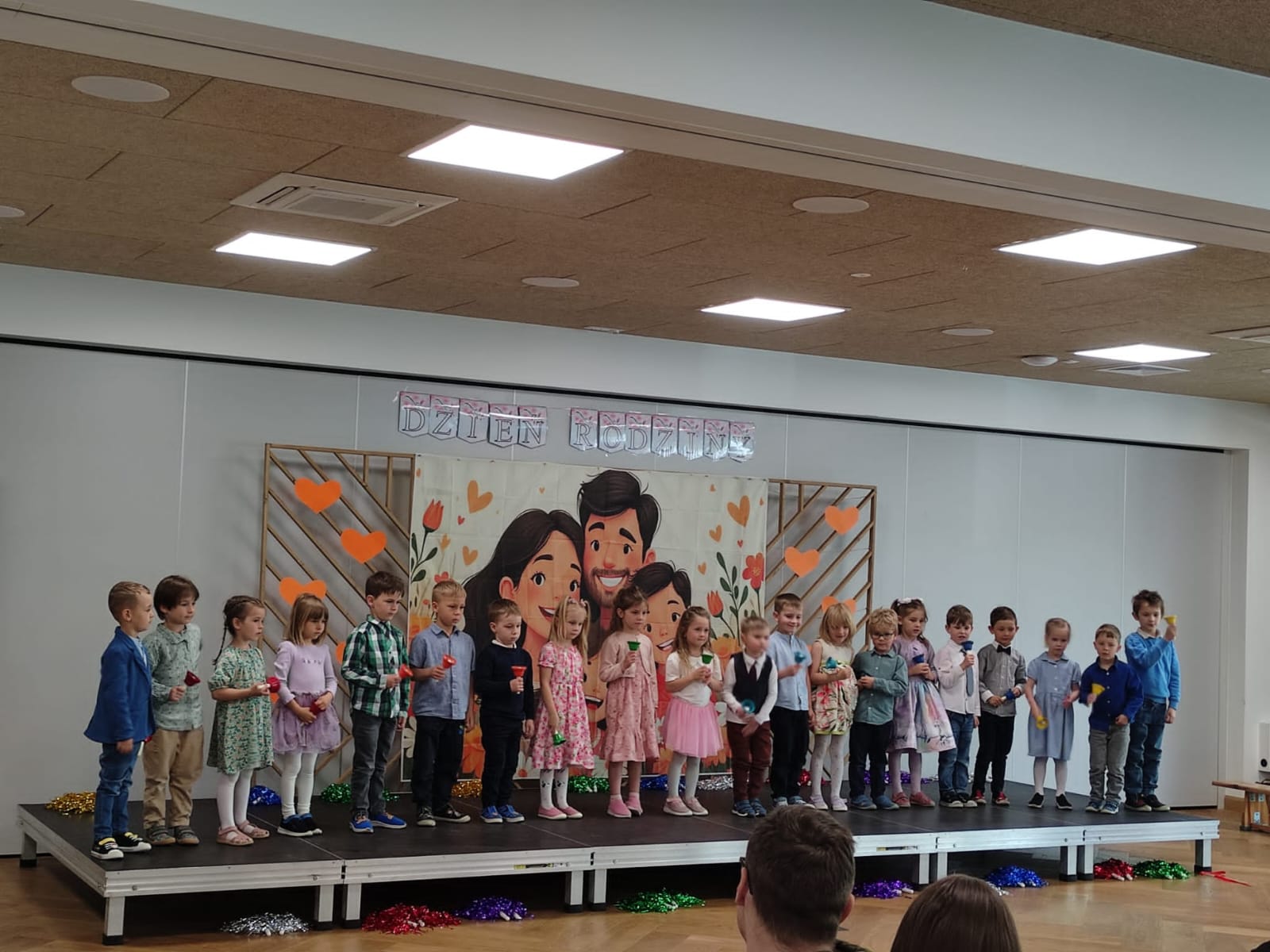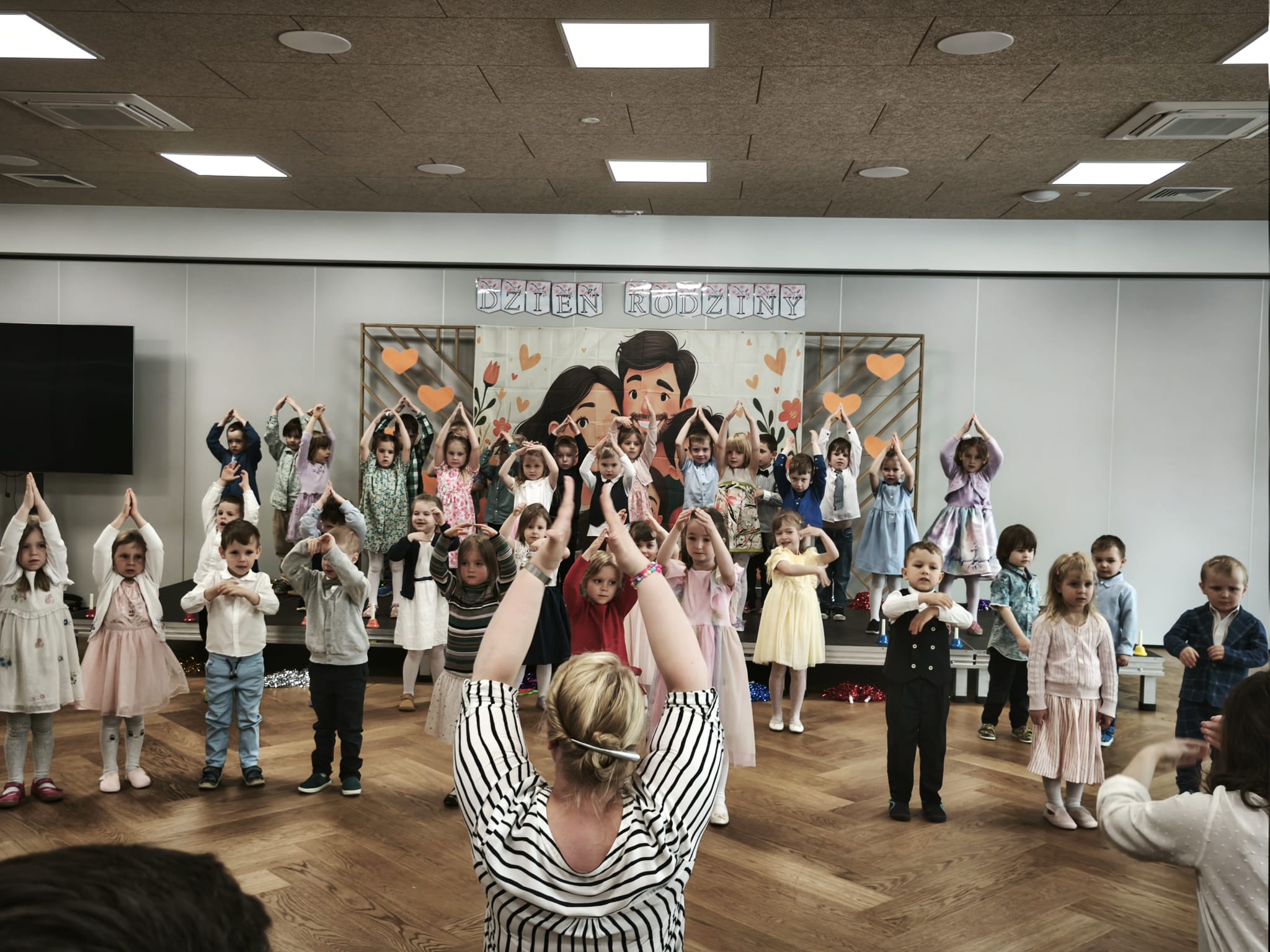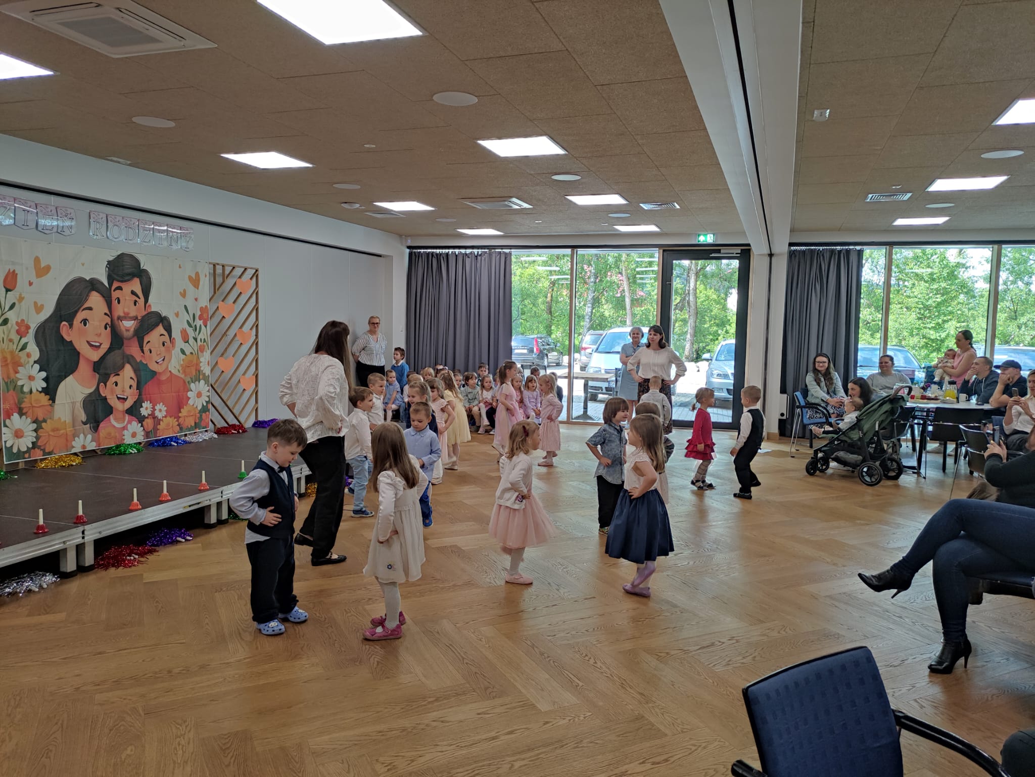27 maja spotkaliśmy się wszyscy razem w Centrum Parafialnym Malinka na organizowanym z okazji święta Mamy i Taty „Dniu rodziny”. Był to niezwykły czas zarówno dla nas nauczycieli, rodziców jak i dzieci. Pełen wzruszeń, radości i uśmiechu, a przede wszystkim był to czas, który mogliśmy spędzić ze sobą przy kawie, herbatce bez pośpiechu, w miłej atmosferze z dala od codziennych zmartwień. Z tej okazji nasze przedszkolaki z grupy maluszków i starszaków przygotowały dla rodziców krótki program artystyczy, z którym wystąpiły dla swoich najbliższych. Podczas uroczystych przedstawień przedszkolaki pięknie powiedziały wiersze, zaśpiewały piosenki, zagrały na dzwonkach i zatańczyły tańce. Na koniec wręczyły najbliższym własnoręcznie wykonane laurki i małe upominki. Bardzo serdecznie dziękujemy wszystkim rodzicom za zaangażowanie w przygotowanie tej wspaniałej uroczystości oraz Centrum Malinka za udostępnienie niejsca i miłe przyjęcie.