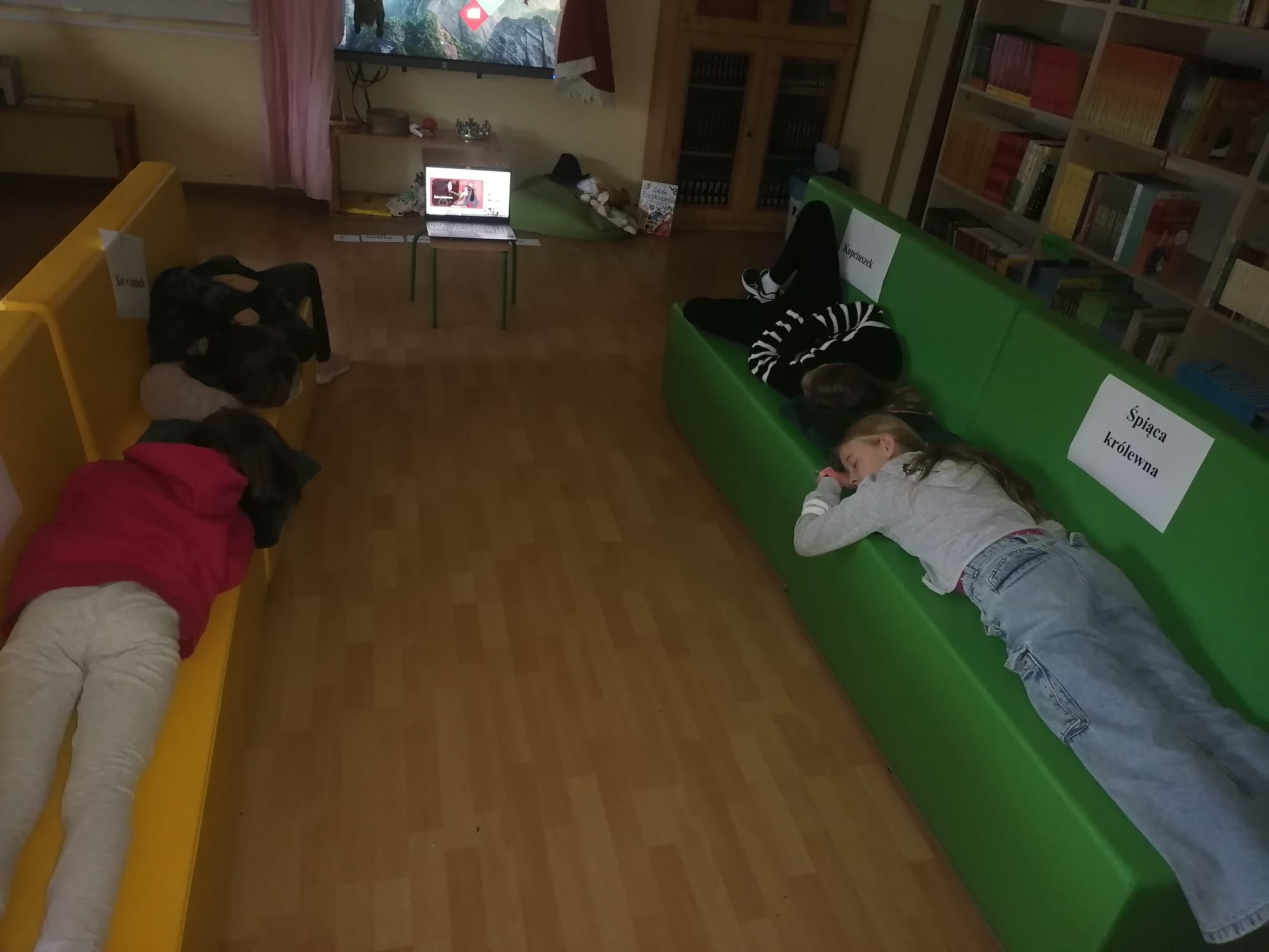 Następnie uczestnicy wzięli udział w grze bibliotecznej, w której wykorzystali zdobytą wiedzę, by przywrócić „bajkowy porządek” – dopasowując zakończenie do bajki, układając puzzle, dopasowując rekwizyty do postaci , budując wieżę dla Śpiącej Królewny.