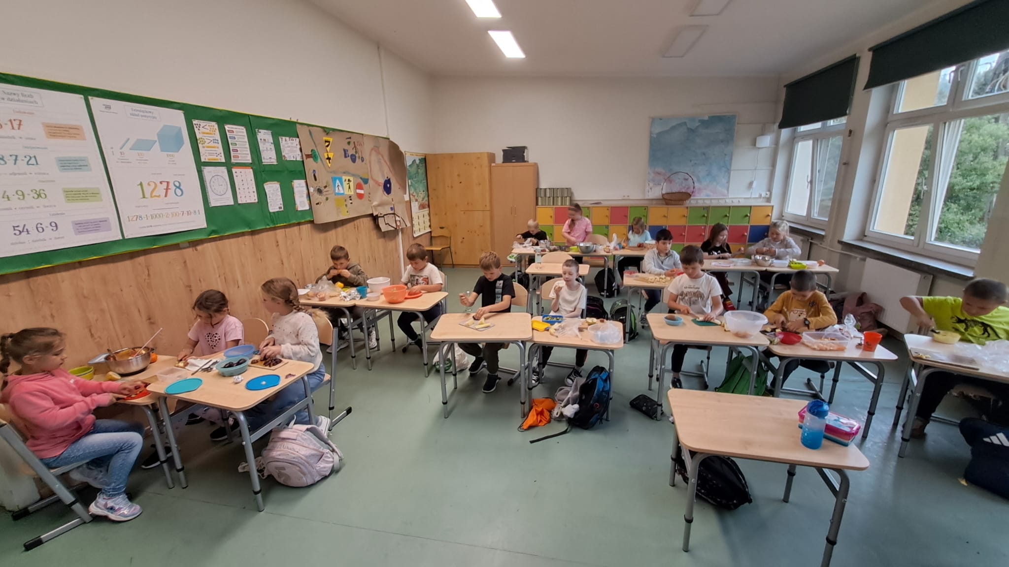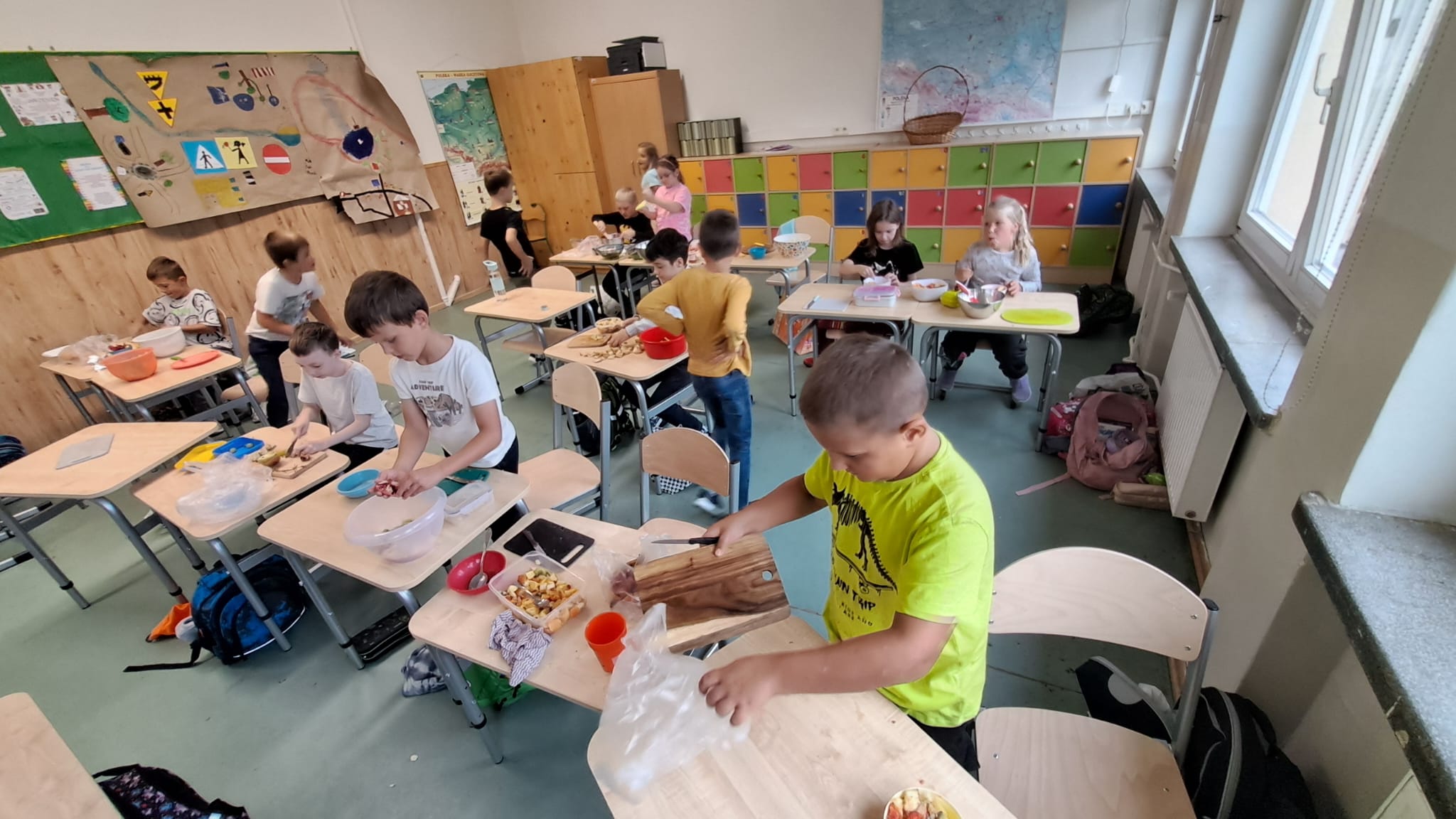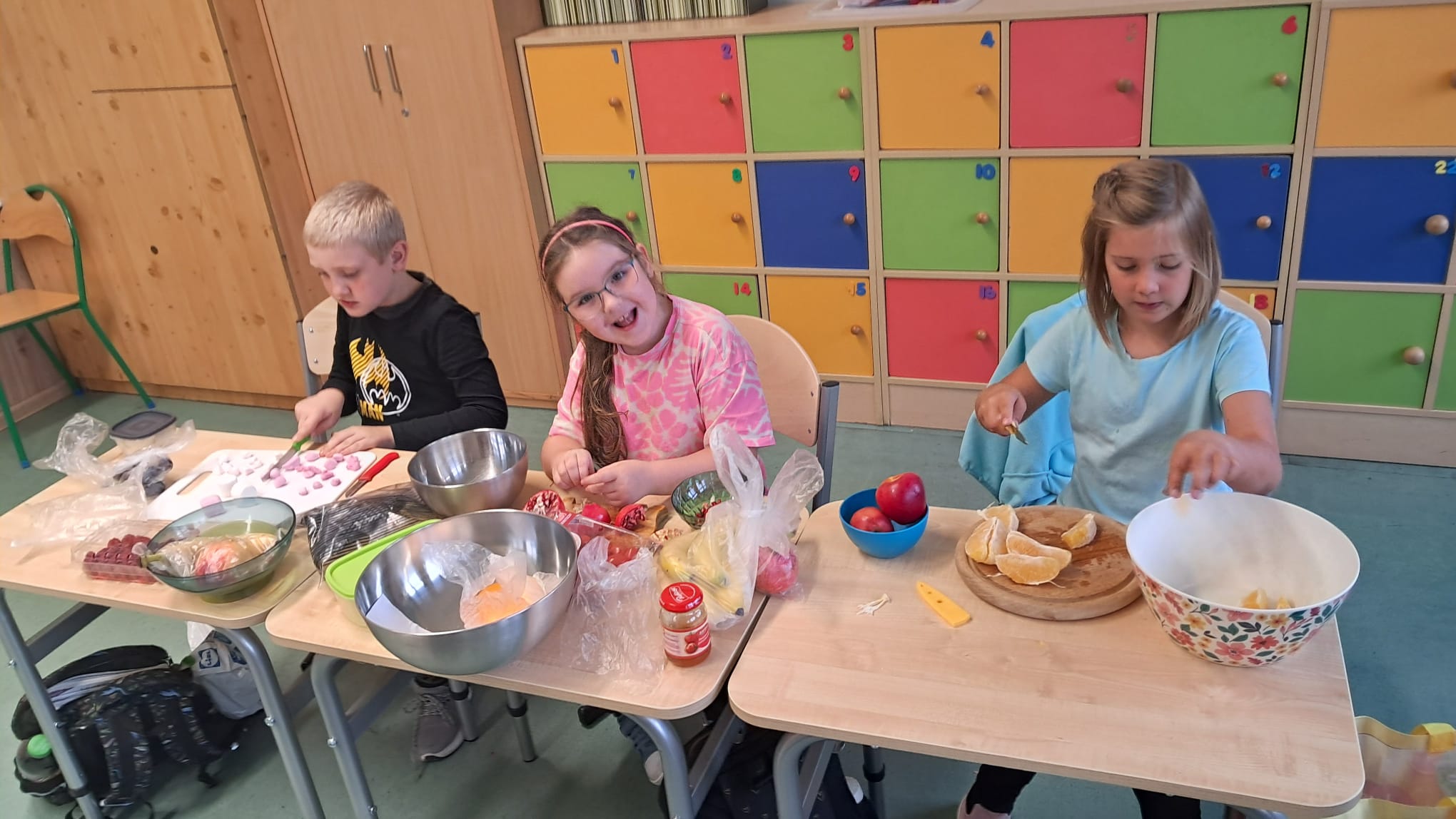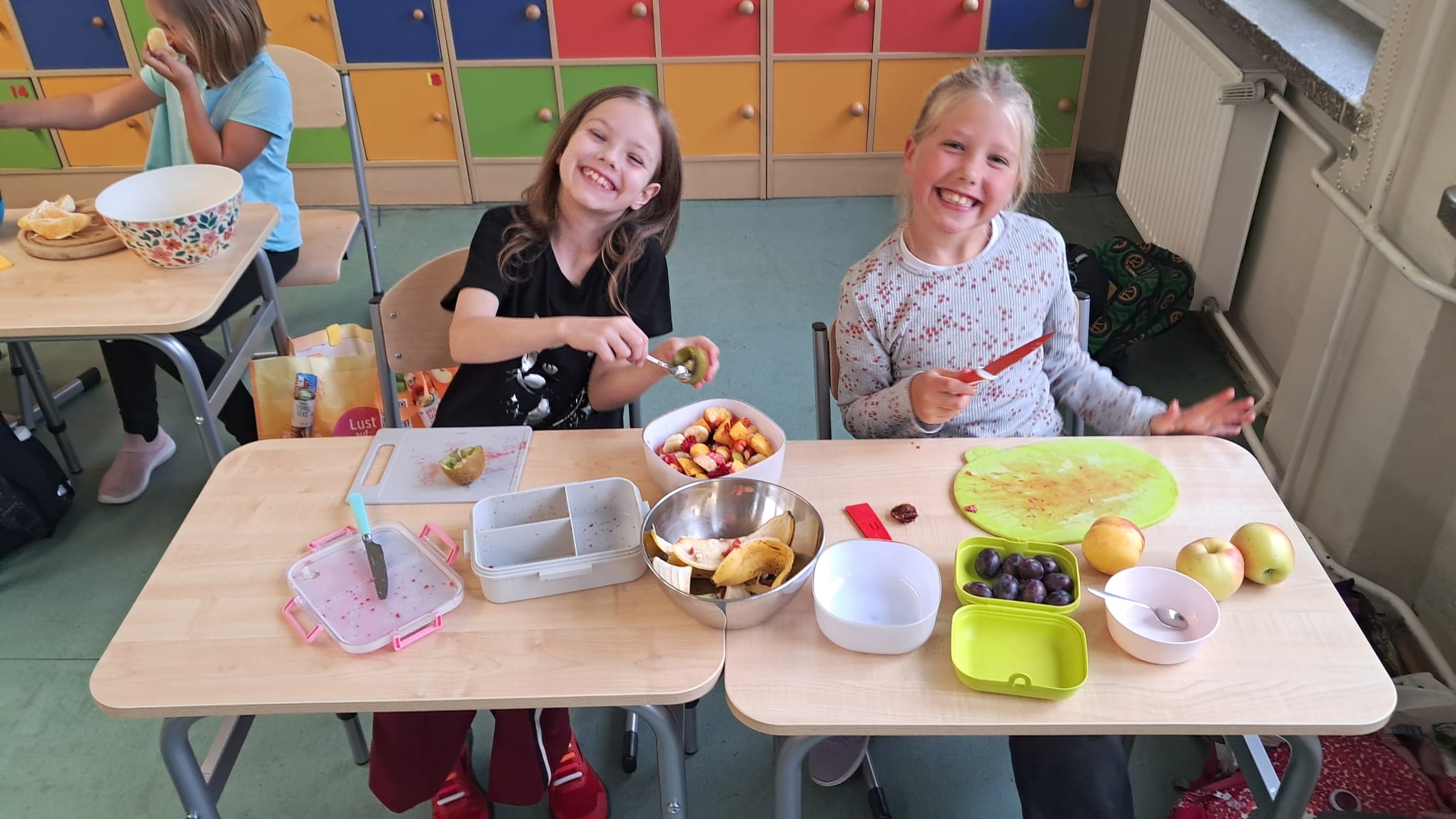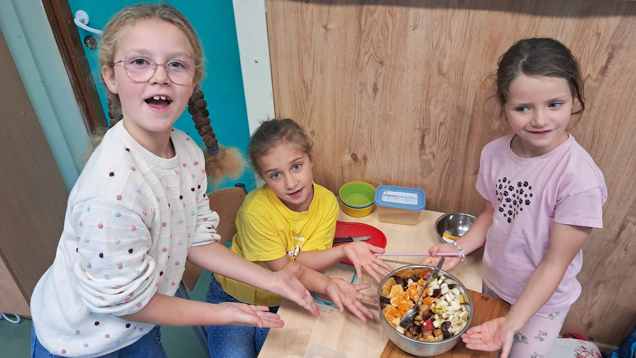 Wspólna zabawa,współpraca a w efekcie pyszna i zdrowa sałatka owocowa. Trudno było zdecydować i wybrać tę najlepszą. Wszyscy spisali sie na 6.