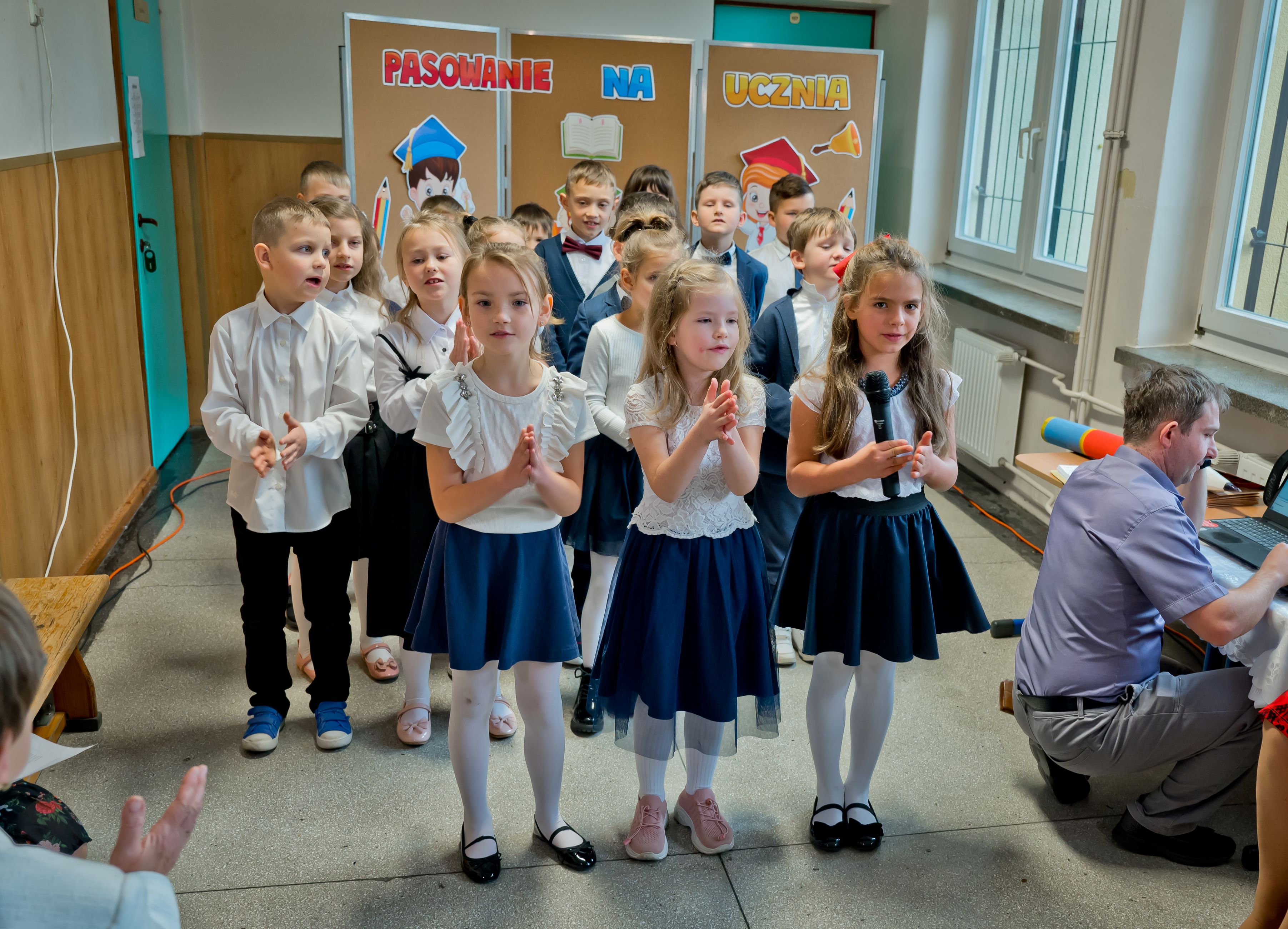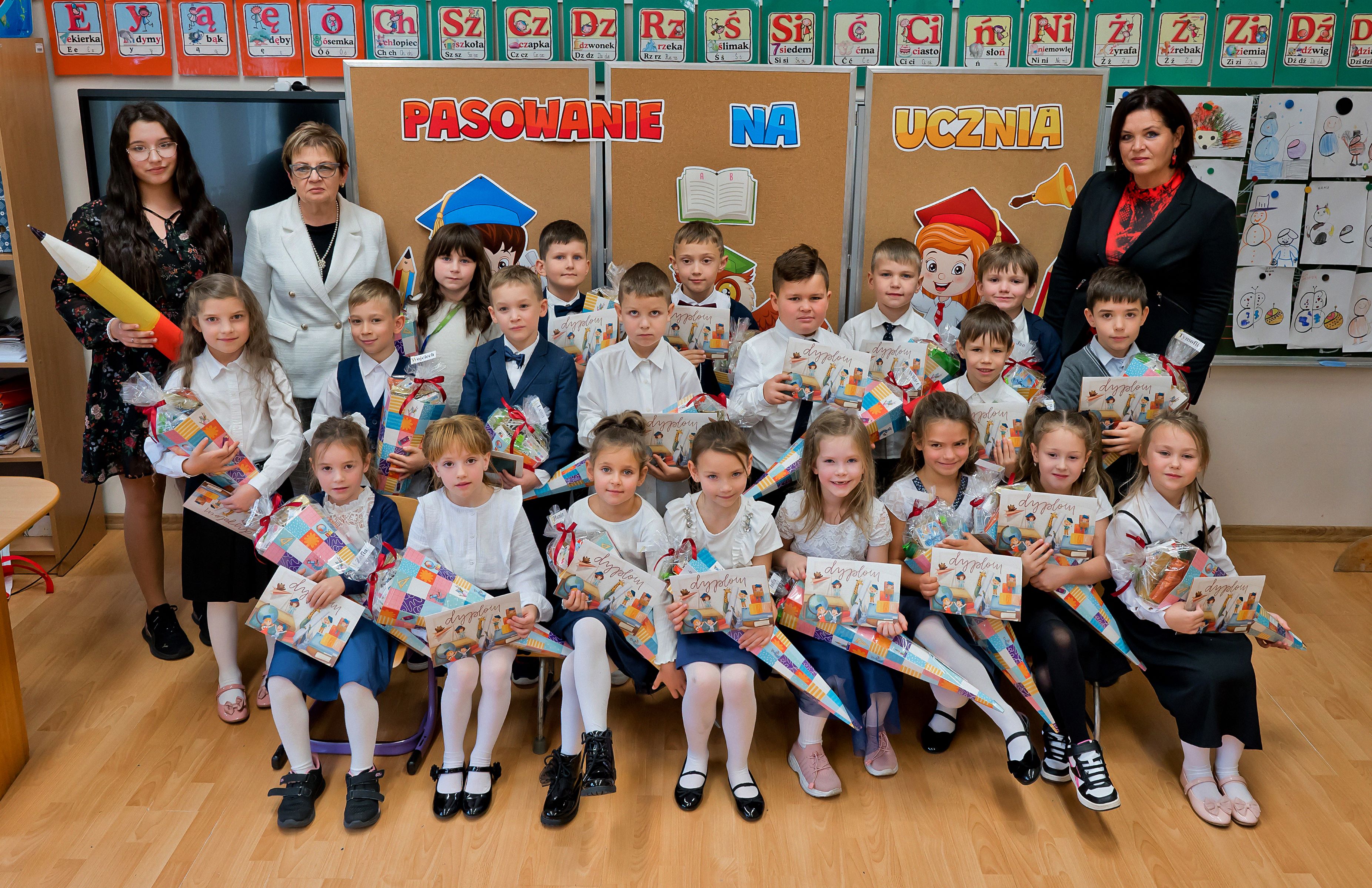 14 października 2025 r.w naszej szkole odbyła się bardzo ważna dla nas uczniów pierwszej klasy uroczystość, a mianowicie uroczystość pasowania nas na uczniów pierwszej klasy. Z tej okazji nasza klasa zaprezentowała przed zaproszonymi na tę uroczystość rodzicami, panią dyrektor, nauczycielami i przewodniczacą szkoły program artystyczny. Pasowanie na ucznia każdy z nas przyjął z dumą i radością. My uczniowie pierwszej klasy dziękujemy naszym rodzicom za wsparcie, przygotowanie słodkiego poczęstunku i oczekiwane przez nas rogi obfitości. Wydarzenie to było pełne podniosłej atmosfery, radości i wzruszeń.