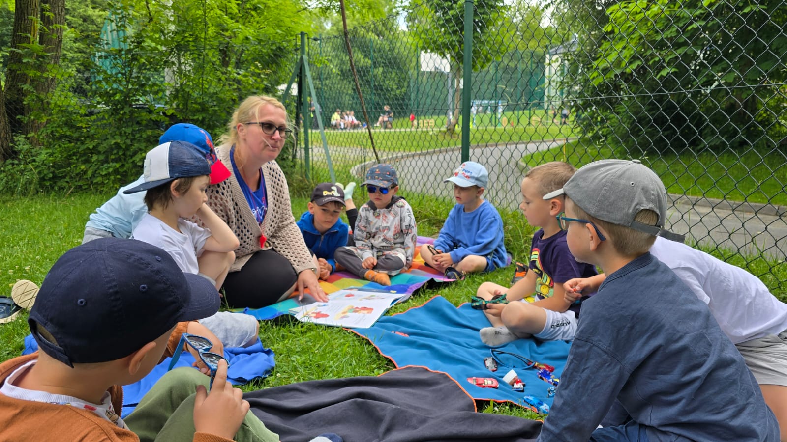 Na zakończenie cyklu zajęć z ksiażką realizowanych w ramach Narodowego Programu Czytelnictwa 2.0 zorganizowaliśmy dla naszych przedszkolaków "Piknik z ksiażką". Dzieci przyniosły z domu kocyki na których słuchały czytanych przez wychowawcę ulubionych utworów literackich. To był dla dzieci niezwykły dzień, pełen radości do którego na pewno wrócimy znowu w kolejnym roku przedszkolnym.