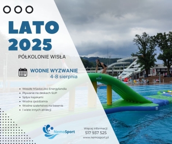 WODNE WYZWANIE – propozycja dla młodych miłośników wody! Zabawy w wodzie, wyjazd nad jezioro, wodna zjeżdżalnia i spływ kajakami. To nie tylko świetna zabawa, ale też rozwijanie umiejętności i pewności siebie w wodzie
