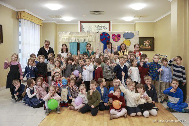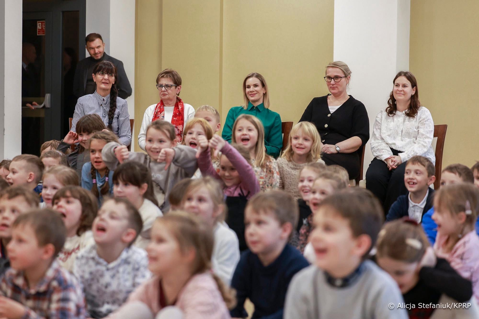 Pierwsza Dama Marta Nawrocka zainaugurowała cykl spotkań pod hasłem „Hejt? Nie, dziękuję!”. Pierwsze z nich odbyło się 17 listopada 2025r. na Zamku w Wiśle, w Rezydencji Prezydenta RP. Uczniowie klasy I, przedszkolaki z grupy II i klasy „0” wzięły udział w warsztatach „Hejt OFF – Słowa Mają Moc!”. Ich program ma na celu podnoszenie świadomości dzieci i młodzieży na temat zjawiska hejtu, jego skutków emocjonalnych i prawnych, a także naukę tego, jak przeciwdziałać przemocy słownej w życiu codziennym i Internecie. Wszyscy razem obejrzeliśmy także spektakl „Niebieska dziewczynka”. To historia, która uczy tolerancji i pozwala oswoić się z tematem niepełnosprawności. Cały dzień był dla dzieci bardzo emocjonujący, nie każdy bowiem ma zaszczyt osobiście poznać Pierwszą Damę i spędzić z nią w miłych okolicznościach czas. Jesteśmy bardzo wdzięczni za to wyróżnienie!
