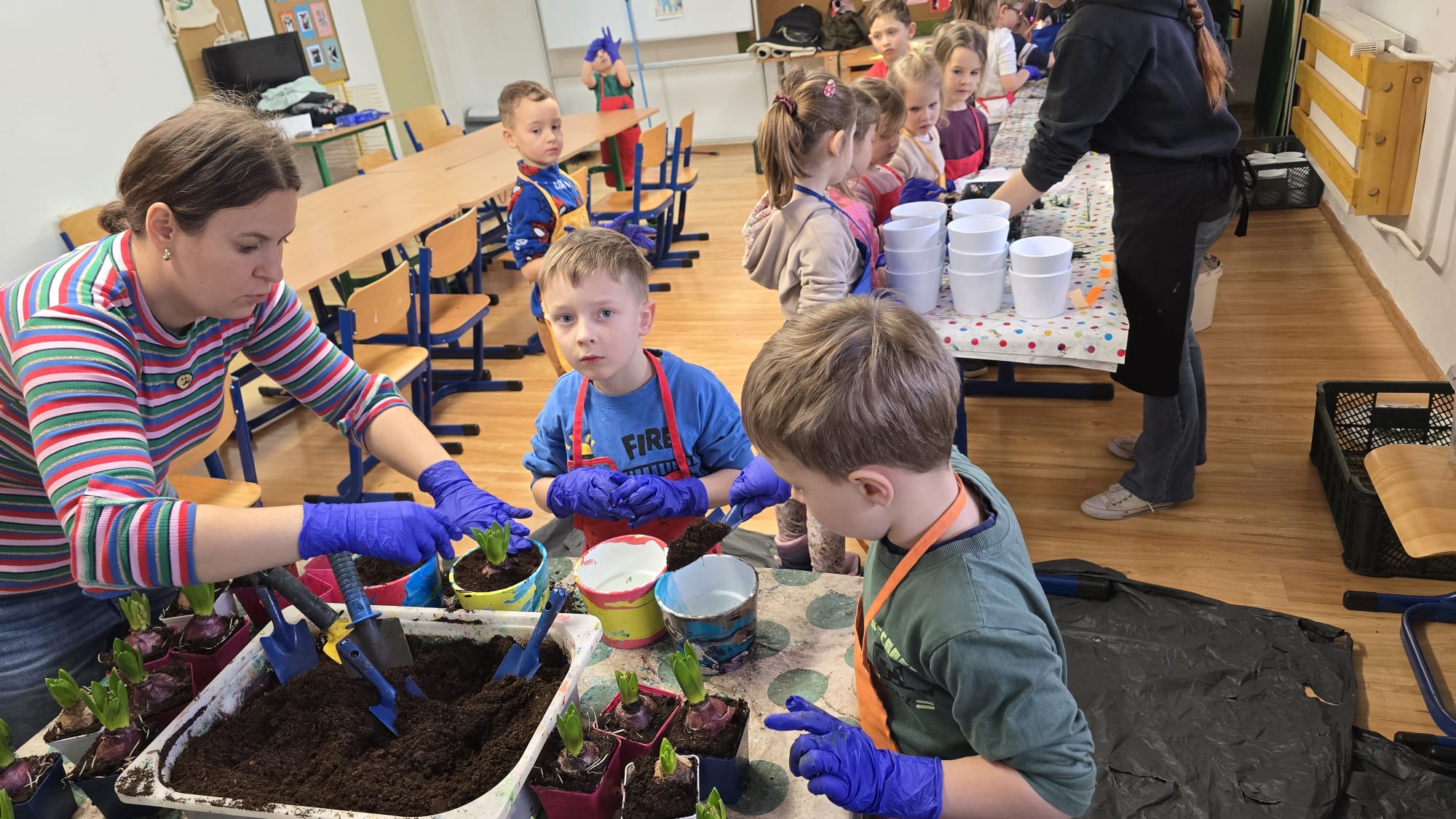 Warsztaty dostarczyły dzieciom wielu pozytywnych emocji, uczyły cierpliwości oraz dokładności, a także zachęcały do eksperymentowania z kolorami. Gotowe doniczki zostały pozostawione do wyschnięcia, a następnie zostały użyte do zasadzenia w nich roślin.