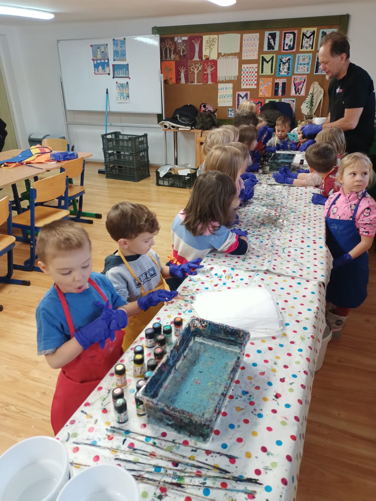 W dniu 13 stycznia 2026r. w przedszkolu odbyły się kreatywne warsztaty plastyczne prowadzone przez firmę „Grajfka” podczas których dzieci z wszystkich grup poznały niezwykłą technikę malowania na wodzie. Zajęcia miały na celu rozwijanie wyobraźni, kreatywności oraz sprawności manualnej dzieci, a także dostarczenie im radości z twórczego działania.