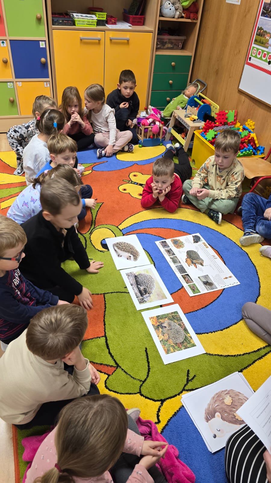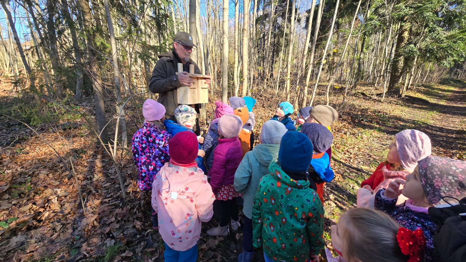 Na zajęciach ekologicznych w listopadzie wszystkie realizowane tematy skupiały się wokół leśnych zwierząt i lasu. Obchodziliśmy "Dzień jeża" podczas którego dzieci dowiedziały się więcej o tym jak wygląda jeż, poznaliśmy środowisko życia, wykonywaliśmy prace plastyczne i rozwiązywaliśmy quizzy na temat tych chronionych zwierząt. Wyszliśmy również z dziećmi do lasu obserwować ptaki i zwierzęta leśne oraz żegnalismy "jesienne drzewa". Pan Leśniczy Maciej Żabicki towarzyszył nam w leśnej wyprawie i opowiedział dzieciom o ptakach oraz pokazał budki lęgowe, które mieliśmy możliwośc obserwować podczas zmieszczania ich na drzewach.