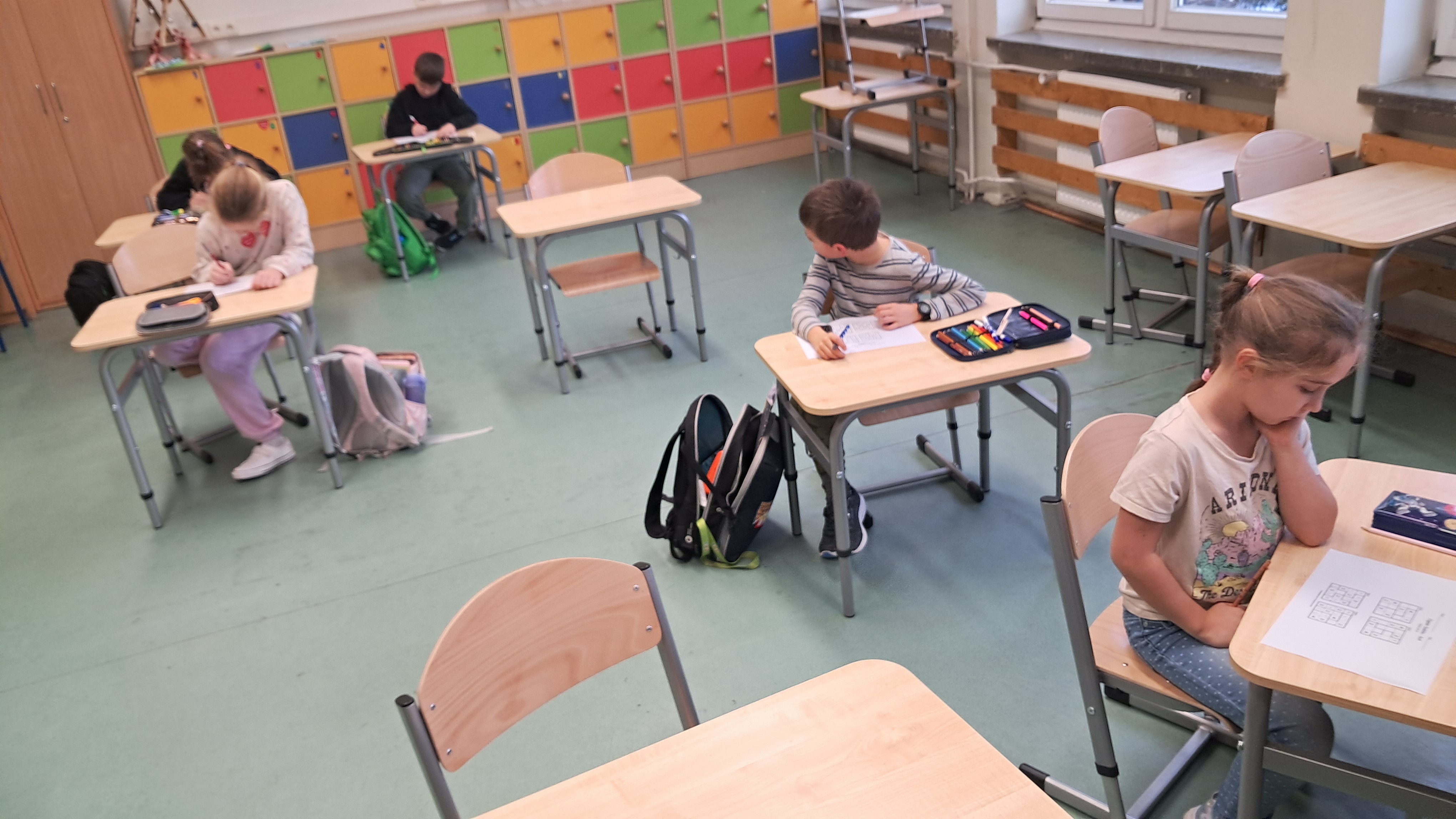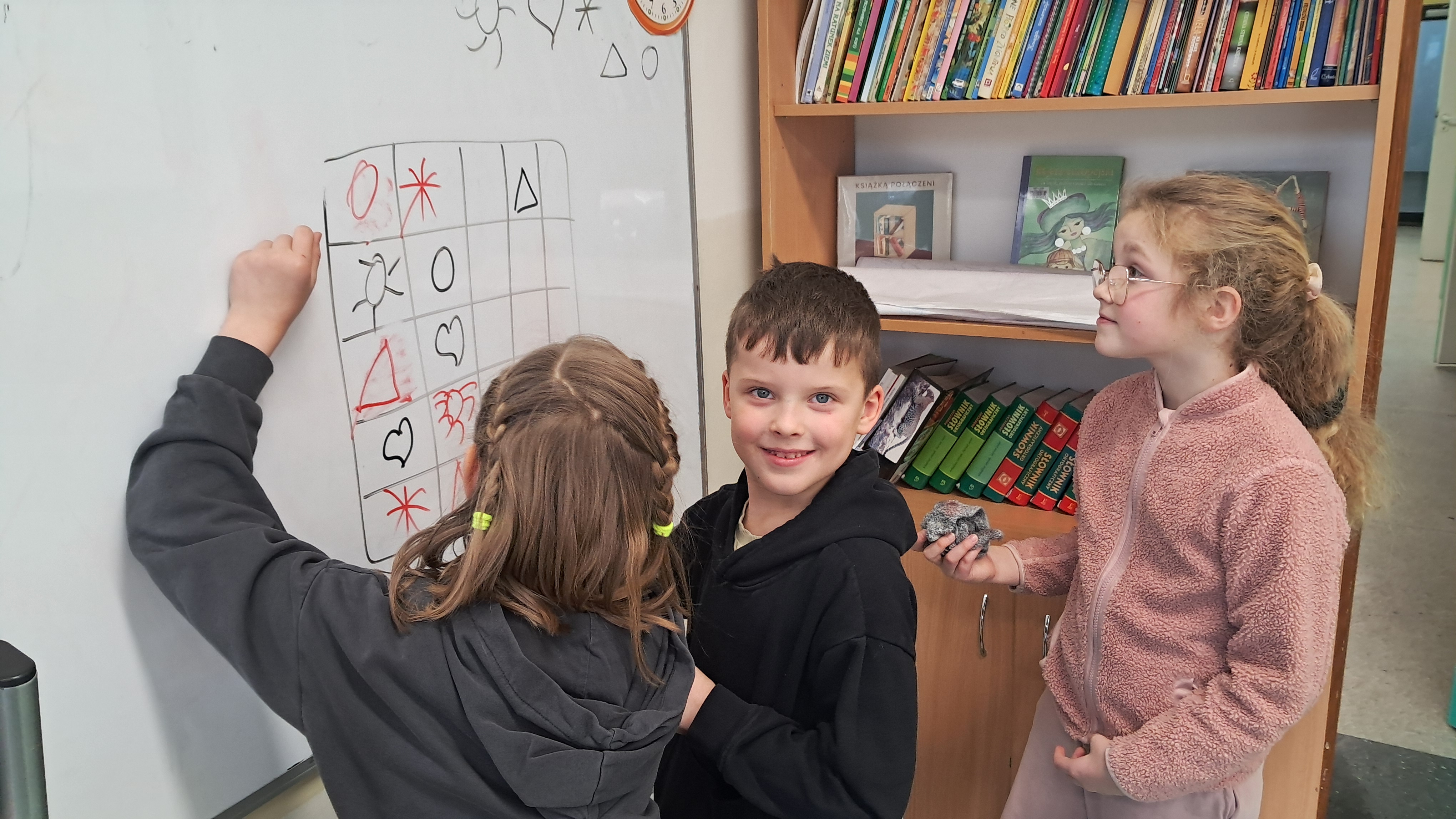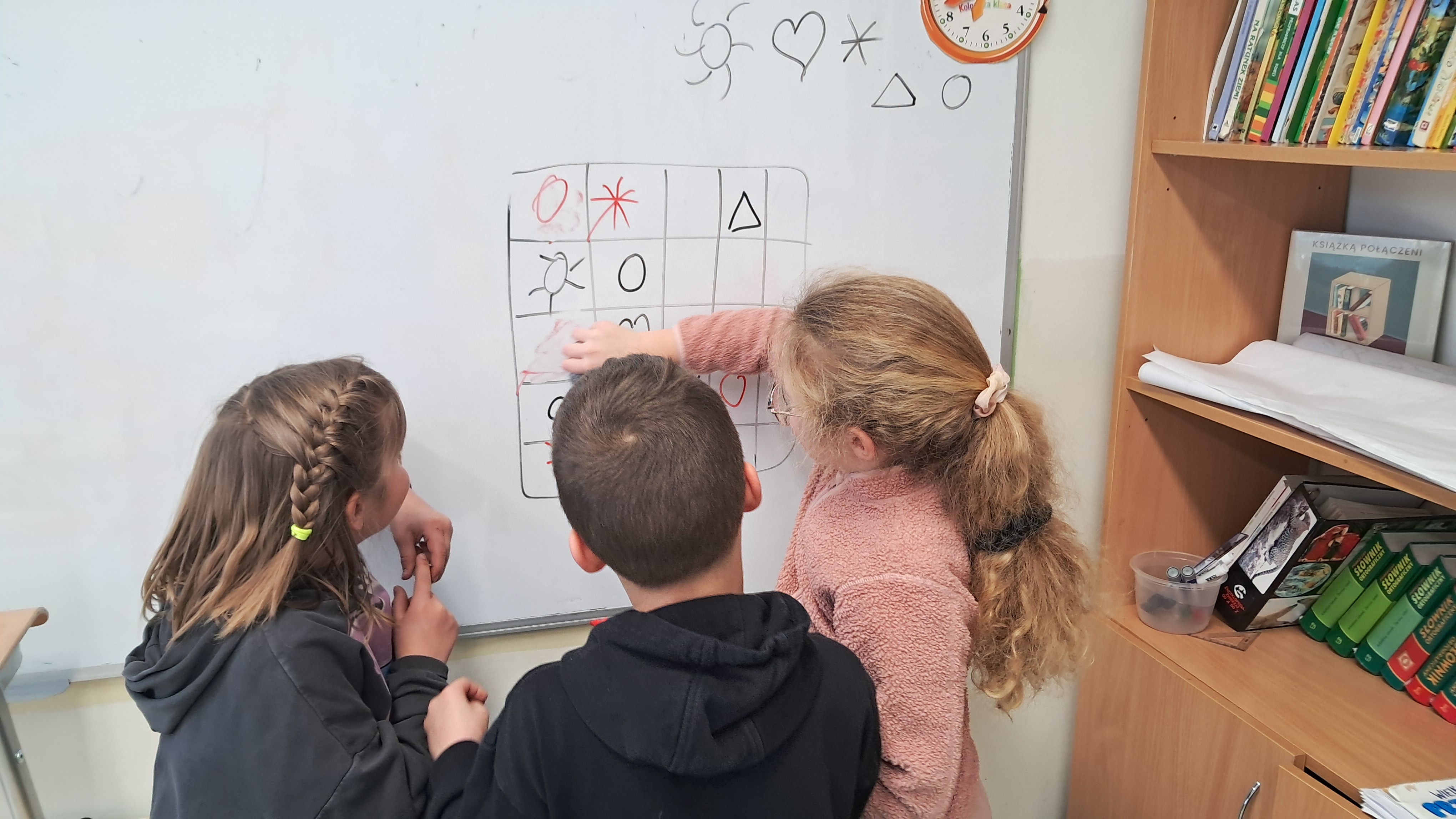 Podczas zajęć uczniowie samodzielnie rozwiązywali przygotowane karty pracy dostosowane do ich wieku i możliwości. Stopniowo podejmowali coraz trudniejsze wyzwania, ucząc się analizować układ pól, porównywać brakujące elementy oraz wyciągać wnioski na podstawie już wpisanych cyfr lub symboli. Dzieci chętnie dzieliły się swoimi spostrzeżeniami i wspólnie omawiały różne strategie dochodzenia do poprawnego rozwiązania.