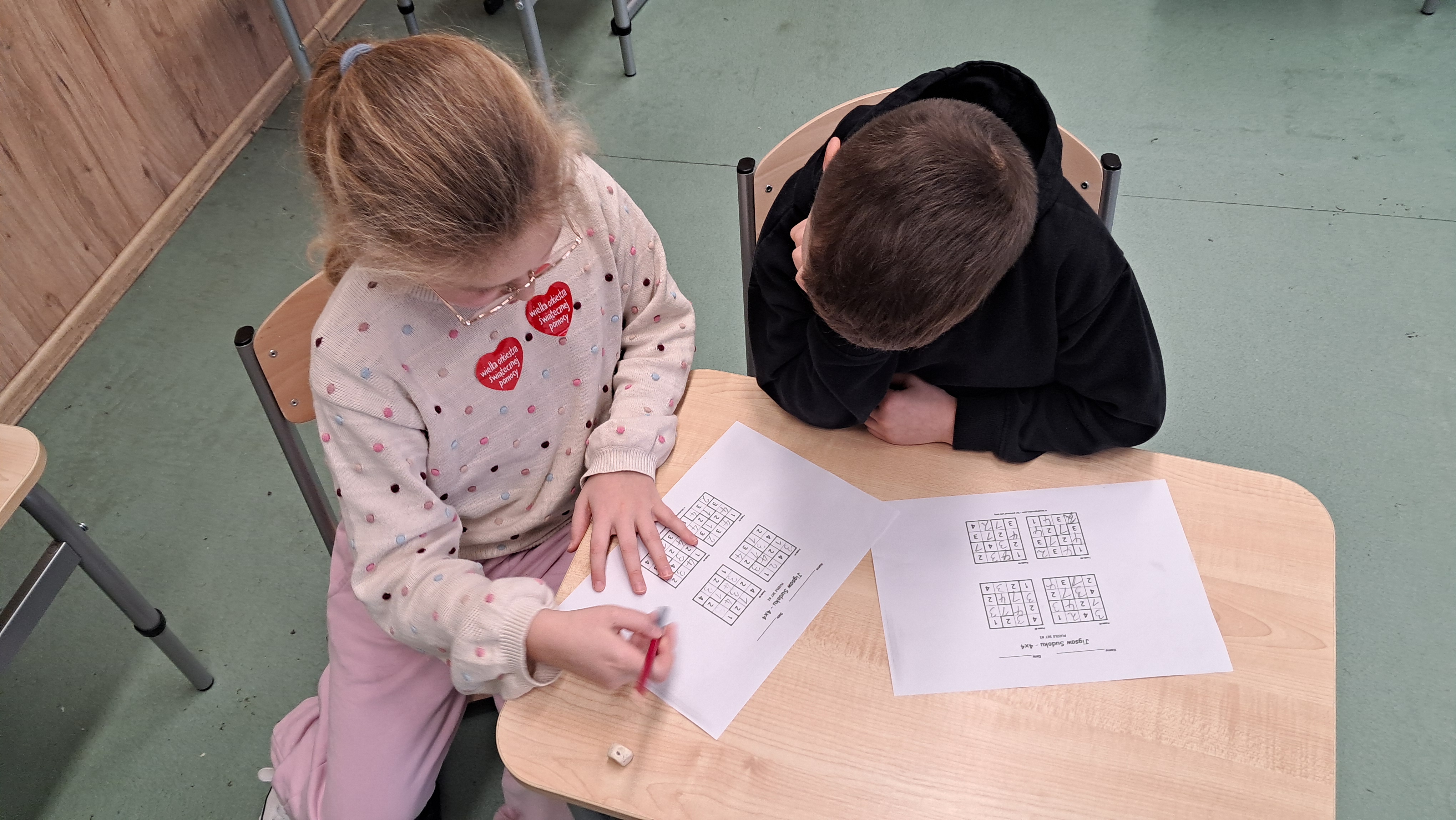 W styczniu zajęcia rozwijające z matematyki w klasie II poświęcone były łamigłówkom logicznym typu sudoku. Uczniowie z dużym zainteresowaniem poznawali tę formę aktywności matematycznej, która łączy zabawę z rozwijaniem umiejętności logicznego myślenia, spostrzegawczości oraz koncentracji uwagi. Praca z sudoku stała się dla dzieci okazją do ćwiczenia cierpliwości, dokładności oraz systematycznego sprawdzania poprawności własnych rozwiązań.